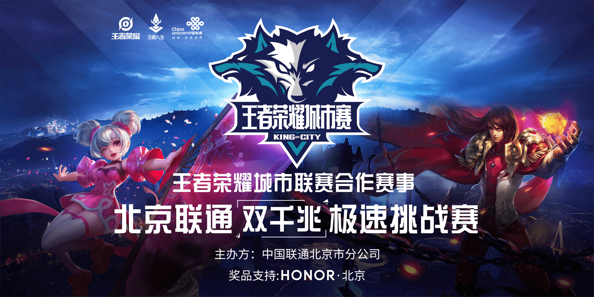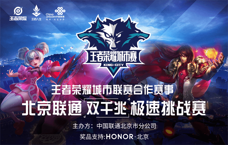 北京联通双千兆极速挑战赛是由北京联通主办的5G电竞赛事,比赛在千兆宽带及5G网络的加持下,给与玩家最稳定的网络保障和最完美的电竞体验,做到真正的极速电竞。比赛将作为王者荣耀城市联赛合作赛道的一部分,为更高水平的官方赛事输送优秀的队伍。本届赛事的冠亚军战队将代表北京地区参加王者荣耀官方大区联赛,获得王者荣耀认证的省级选手荣誉称号,晋级积分赛的16强队伍也将获得王者荣耀认证的市级选手荣誉称号。