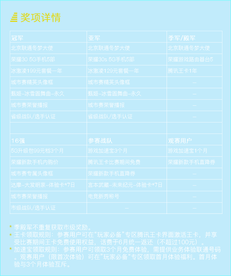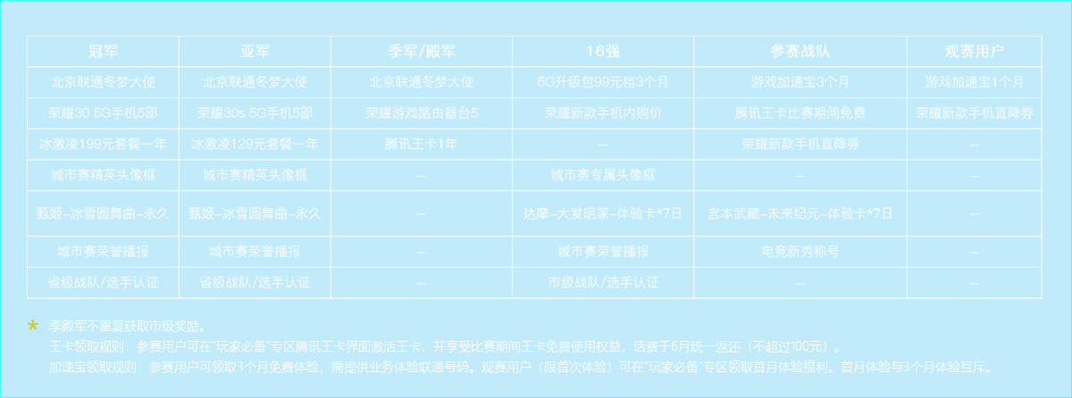 本届赛事全程为线上赛事,比赛冠亚军将获得第八届王者荣耀城市联赛大区赛名额。